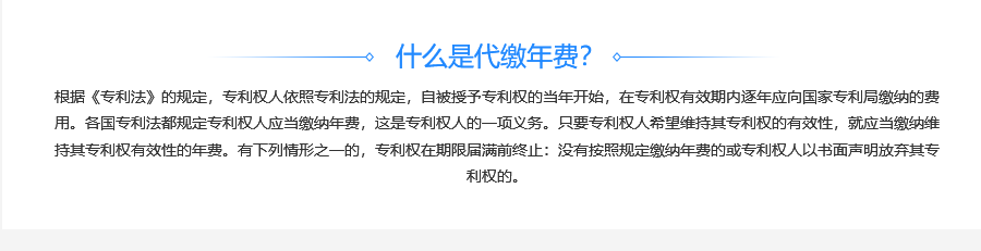(2)第一次缴纳年费,包括在申请人收到专利局发出的《办理登记手续通知书》和《授予专利权通知书》后,办理登记手续时应当缴纳的专利登记费、授予专利权当年的年费和专利证书印花税中,其中授予专利权当年的年费,应当根据专利局发出的《办理登记手续通知书》中指出的年度缴纳,一般来讲,实用新型都是第一年度年费,发明有可能是第2年度或第3年度年费,具体以《办理登记手续通知书》中指出的为准。特别应当注意的是,上述3项费用应当在专利局发出的办理登记手续通知书中指定的期限内缴纳。以后的年费应当在前一年度期满前一个月内预缴。