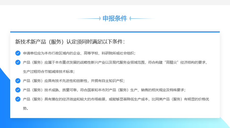 北京市优先认定大气污染防治、污水处理、垃圾处理、智能交通、城市安全运行和应急救援、绿色建筑、住宅产业化及新农村建设,以及文化惠民、健康养老、居民消费等民生领域的新技术新产品(服务)。