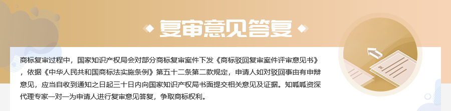 (2)商标申请后,很多企业都已经对商标进行了一定程度的使用和宣传,如果不进行驳回复审,已经进行的投入就付之东流了。